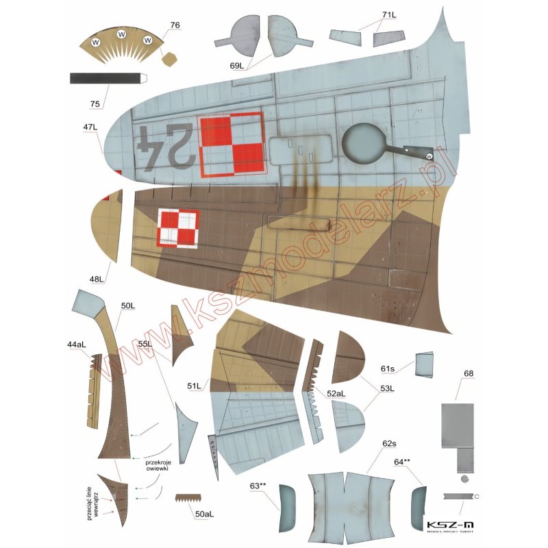 Model kartonowy polskiego samolotu myśliwskiego PZL P.55a - myśliwca planowanego do produkcji w 1940 roku.