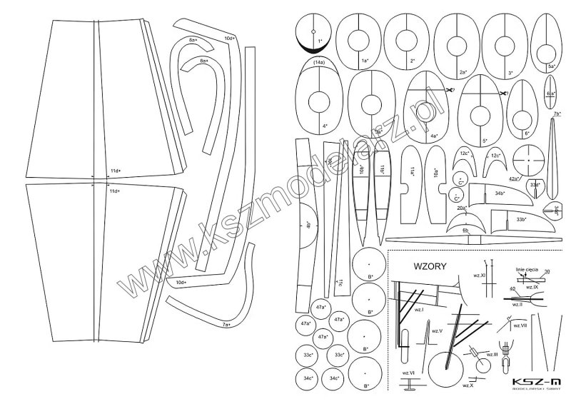- zestaw wycinany laserowo: szkielet (wręgi), koła