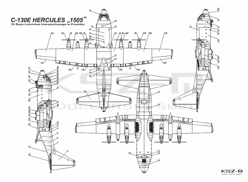 Model kartonowy przedstawiający wojskowy samolot transportowy Lockheed C-130E Hercules w barwach Sił Powietrznych Rzeczypospolitej Polskiej. Opracowanie w skali 1:33 wyróżnia się bardzo dużym rozmiarem oraz wysokim poziomem szczegółowości. W zestawie odwzorowano pełne wnętrze ładowni i kabiny załogi, realistyczne zespoły napędowe oraz charakterystyczne elementy konstrukcji. Model przeznaczony jest dla zaawansowanych modelarzy, poszukujących ambitnego projektu do realizacji. Całość pozwala na wykonanie efektownego egzemplarza w polskim malowaniu eksploatowanym od 2009 roku.