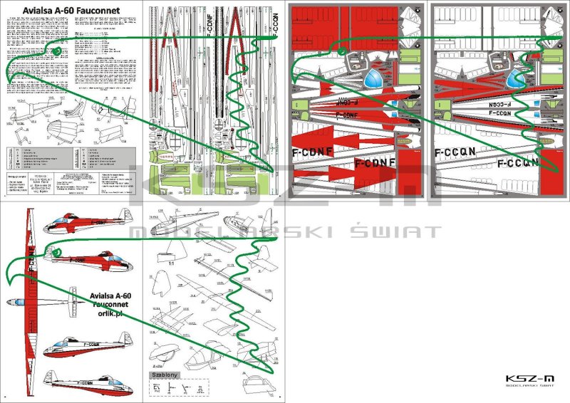 Model kartonowy przedstawia francuski szybowiec Avialsa A-60 Fauconnet w skali 1:33. Zestaw zawiera części do budowy dwóch modeli tego szybowca. Opracowanie komputerowe autorstwa Moniki Jantar wyróżnia się czytelnymi rysunkami montażowymi oraz estetycznym opracowaniem graficznym.
