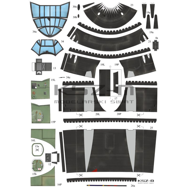 8. Bezpieczeństwo podczas cięcia: Jeśli model wymaga cięcia kartonu, używaj odpowiednich narzędzi (np. nożyk modelarski) i rób to na stabilnej powierzchni, aby uniknąć skaleczeń i uszkodzeń.