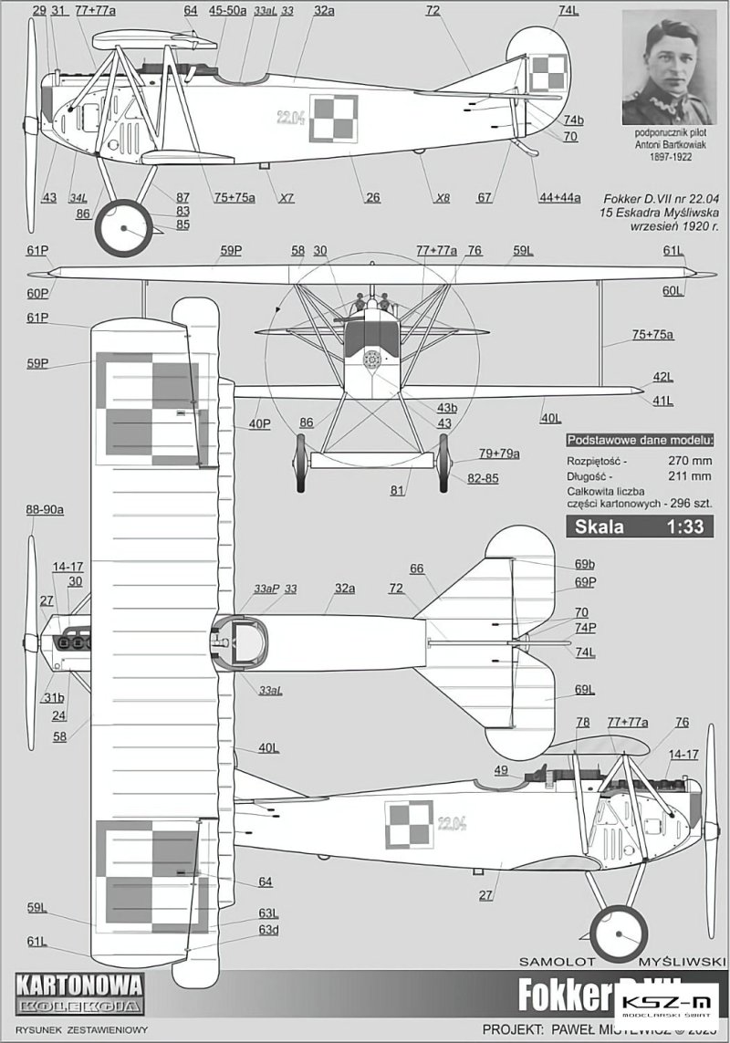Fokker D.VII 22.04 (Polska 1920) - Kartonowa Kolekcja 41 – model kartonowy 1:33
