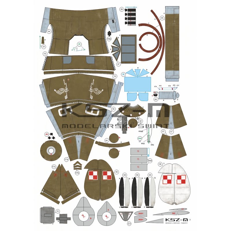 - Zestaw zawiera: arkusze z pomalowanymi częściami modelu, instrukcję montażu, rysunki montażowe