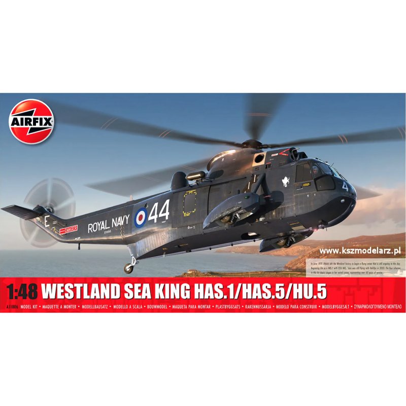 Model przedstawia brytyjski śmigłowiec wielozadaniowy Westland Sea King w skali 1:48, opracowany przez firmę Airfix jako całkowicie nowy projekt. Zestaw umożliwia wykonanie jednej z czterech wersji maszyny: HAS.1, HAS.2, HAS.5 lub HU.5, używanych przez Royal Navy i RAF do zadań zwalczania okrętów podwodnych, ratownictwa i transportu. Model charakteryzuje się bardzo wysokim poziomem detali, realistyczną strukturą kadłuba oraz bogatym wyposażeniem wewnętrznym.