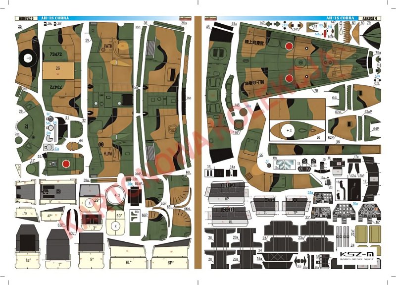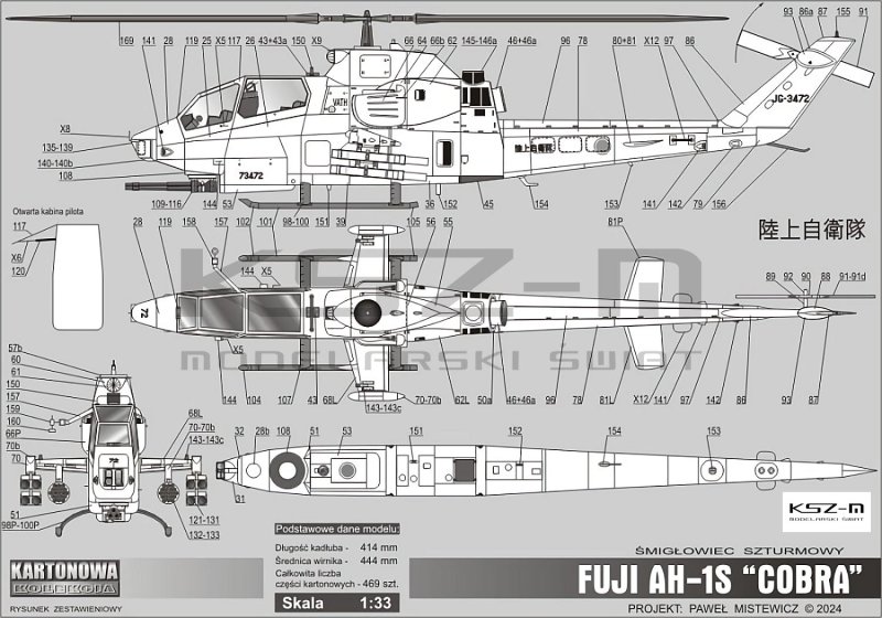 Model kartonowy przedstawia śmigłowiec bojowy Bell/Fuji AH‑1S "Cobra" w barwach Japońskich Lądowych Sił Samoobrony.