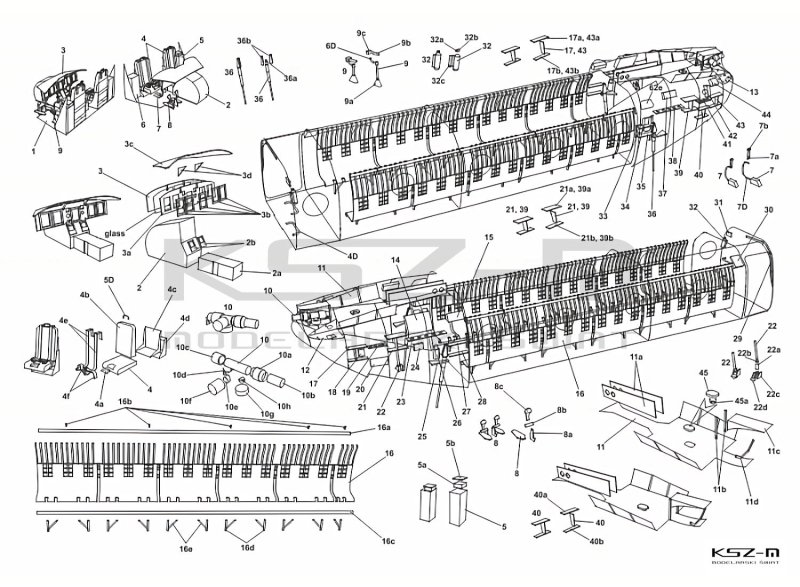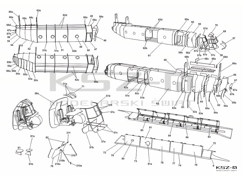 - zestaw wycinany laserowo: szkielet (wręgi)