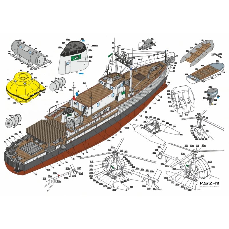 Model kartonowy statku Calypso z Angrafu to szczegółowa replika jednostki badawczej Jacques’a Cousteau w skali 1:100, o długości około 43 cm. Zestaw zawiera precyzyjnie wycięte elementy, pozwalając na realistyczne odwzorowanie takich detali jak helikopter czy boje. To zaawansowany projekt, który wymaga cierpliwości i precyzji, oferując modelarzom fascynującą podróż w świat odkryć morskich. Budowa statku stanowi wyzwanie, ale efekty końcowe zachwycają wiernym oddaniem oryginału, co czyni go idealnym wyborem dla pasjonatów modelarstwa i historii morskiej.