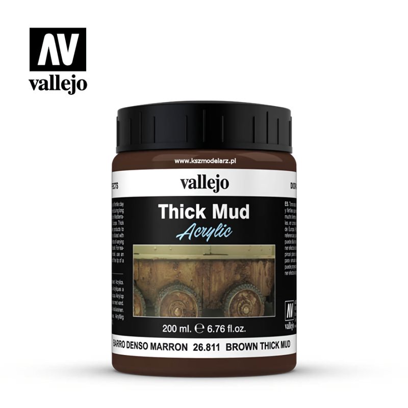 Thick Mud to produkt stworzony przez firmę Vallejo, który służy do tworzenia efektów gęstej, błotnej ziemi w dioramach i makietach. Jest to specjalny rodzaj pasty, która po nałożeniu na powierzchnię tworzy trójwymiarową strukturę przypominającą gęste błoto lub ziemię.