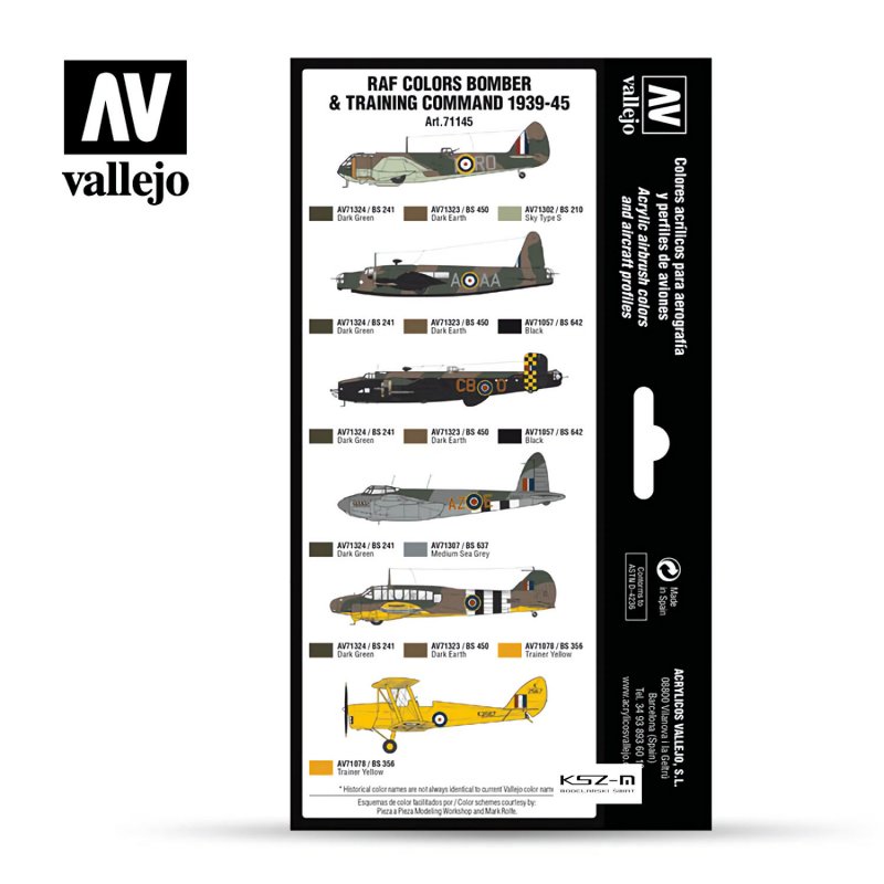 Vallejo 71145 RAF colors Bomber & Training Air Command 1939-1945 - Zestaw 8 farb Model Air