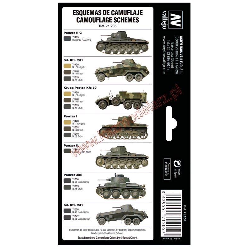 Zestaw farb potrzebnych do pomalowania dowolnego typu pojazdu pancernego armii niemieckiej, używanego w latach 1927-1941. W zestawie znajdują się wzory kamuflażu pojazdów.