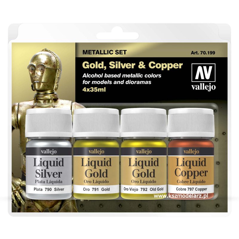 Vallejo 70.199 Metallic SET - Liquid Gold zestaw 4 farb - Gold, Silver, Copper