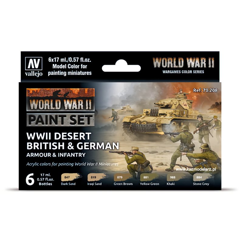 Vallejo 70208 WWII Desert British & German Armour & Infantry - Zestaw 6 farb Model Color - VAL70208