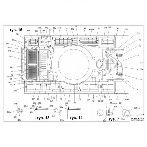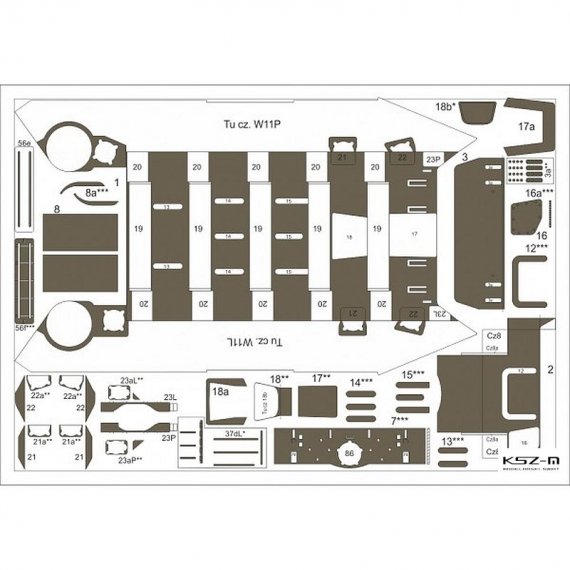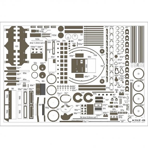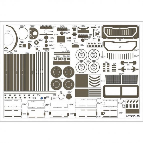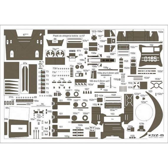 - zestaw wycinany laserowo: szkielet, detale, koła