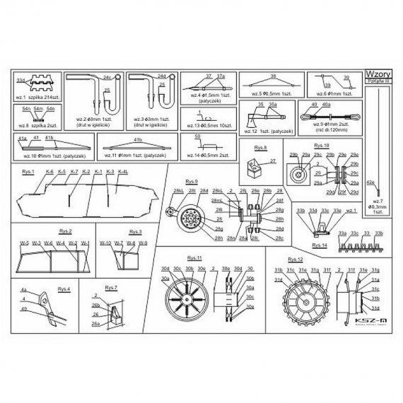 - 14 arkuszy A4 z częściami do wycinania