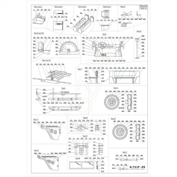 - 11 arkuszy A4 z częściami do wycięcia