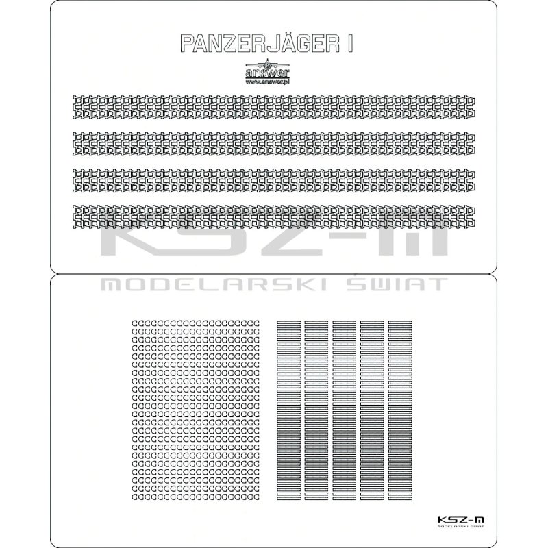 Zestaw łączy zalety szybkiego montażu gąsienic paskowych z realistycznym wyglądem gąsienic z pojedynczych ogniw. Gąsienice układają się na modelu w sposób estetyczny i naturalny.