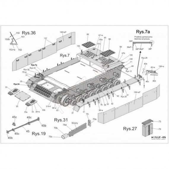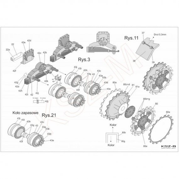 - gąsienice wycinane i grawerowane laserowo