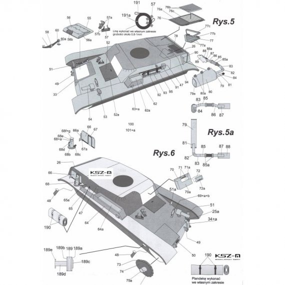 - gąsienice wycinane laserowo