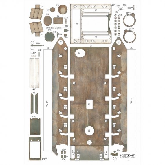 - gąsienice wycinane i grawerowane laserowo