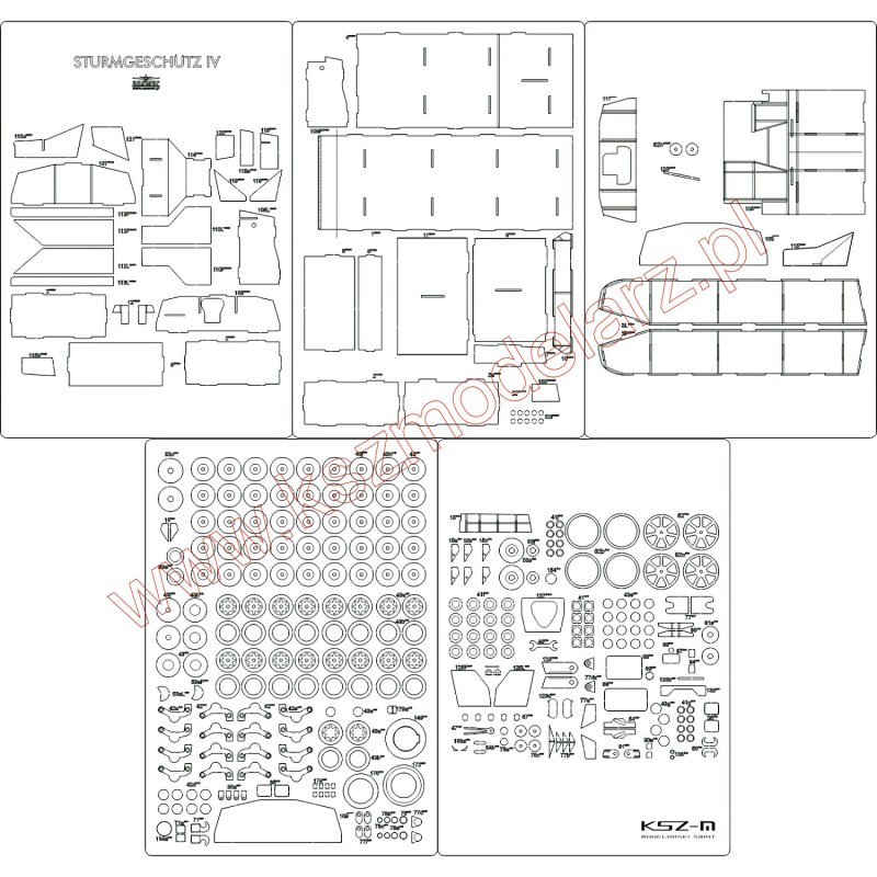 Zestaw wycięty laserowo do kartonowego modelu działa pancernego Sturmgeschutz IV z wydawnictwa Angraf nr 179