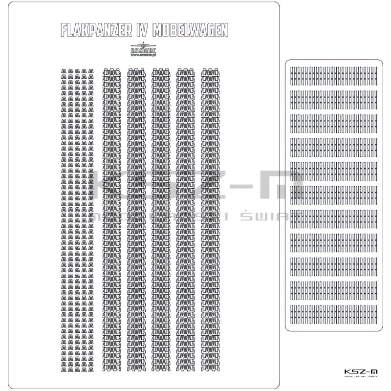 Gąsienice wycinane i grawerowane laserowo do modelu samobieżnego działa przeciwlotniczego Flakpanzer IV Mobelwagen z wydawnictwa Angraf 224