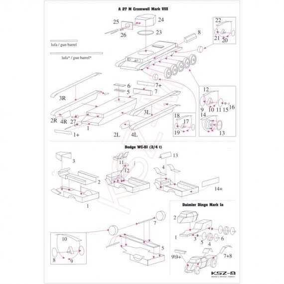 Brytyjski czołg Cromwell VII lub Challenger, samochód Daimler Dingo, samochód Dodge WC-51