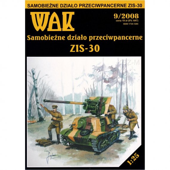 Samobieżne działo przeciwpancerne ZIS-30 z 1941 r. zbudowane na bazie ciągnika artyleryjskiego T-20 Komsomolec (WAK 7-8/07). Model niezbyt duży, zdetalizowany i w atrakcyjnym malowaniu.