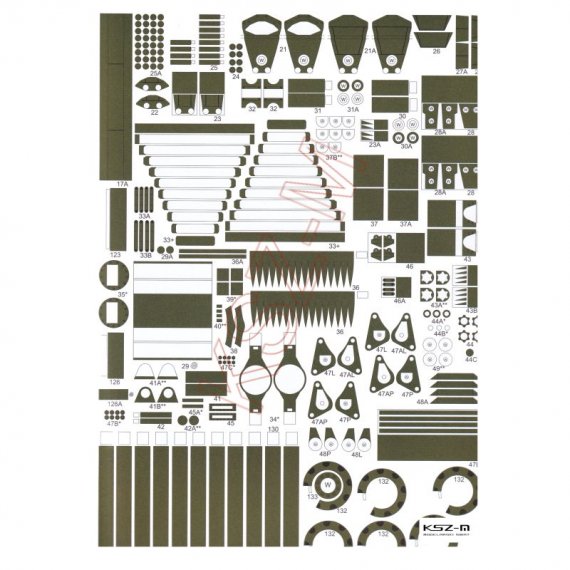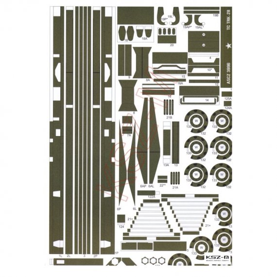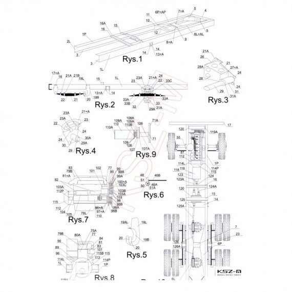 - zestaw wycinany laserowo: szkielet, detale, bieżniki
