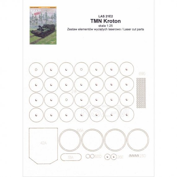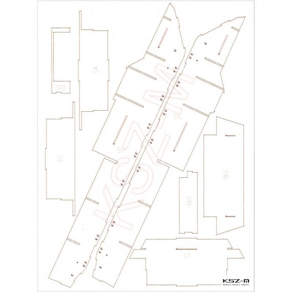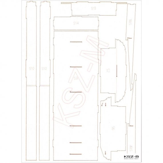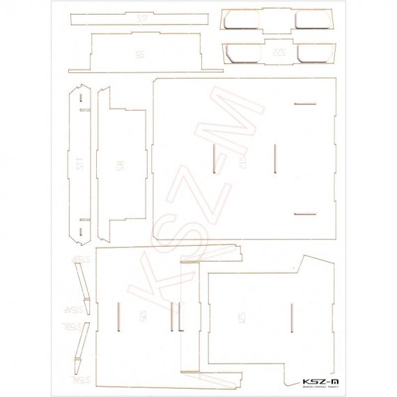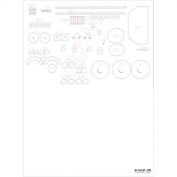 Laserowo wycięte elementy modelu, które w oryginalnej wycinance wymagają podklejenia odpowiedniej grubości tekturą. Elementy te są precyzyjnie wycinane ploterem laserowym od razu w tekturze o właściwej grubości i wymagają jedynie wypchnięcia palcem z arkusza (połączone są tylko małymi łącznikami).