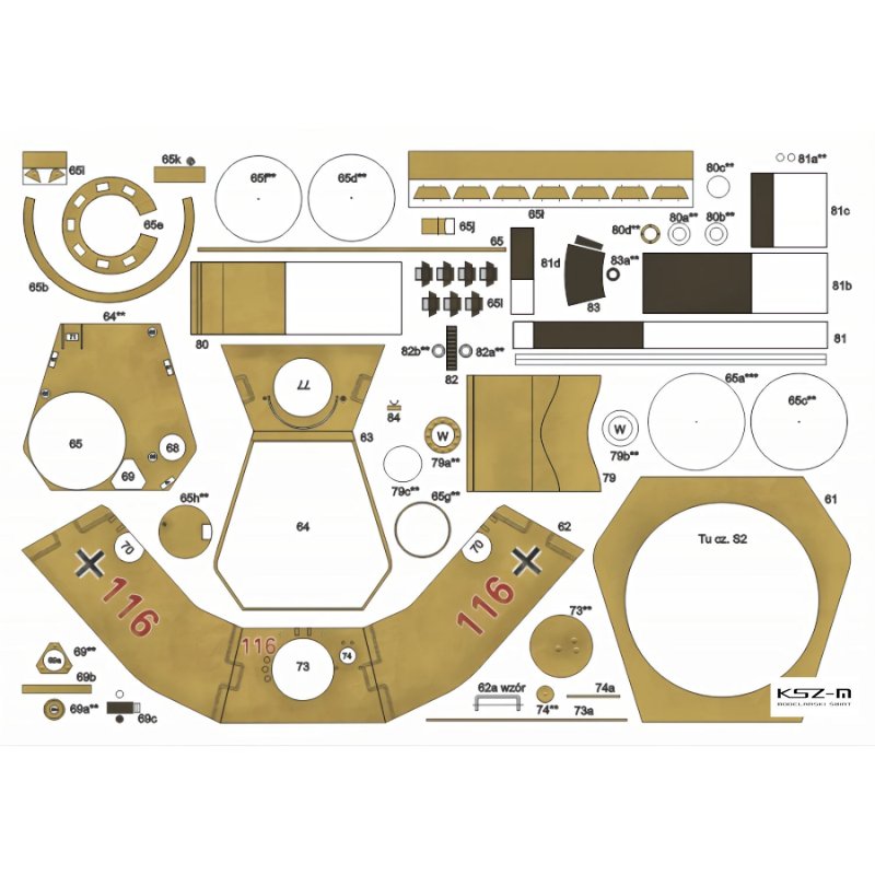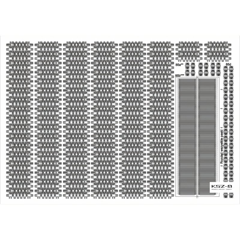 - gąsienice wycinane i grawerowane laserowo