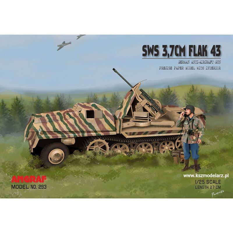Model kartonowy przedstawia niemiecki półgąsienicowy pojazd Schwerer Wehrmachtsschlepper (sWS) uzbrojony w przeciwlotnicze działo 3,7 cm Flak 43. Opracowany w skali 1:25 przez Dariusza Wandtke (koncepcja) i Pawła Homerskiego (grafika), zestaw wyróżnia się starannym wykonaniem oraz wymagającą konstrukcją. Zestaw przeznaczony jest dla doświadczonych modelarzy poszukujących realistycznego odwzorowania pojazdu z końcowego okresu II wojny światowej.