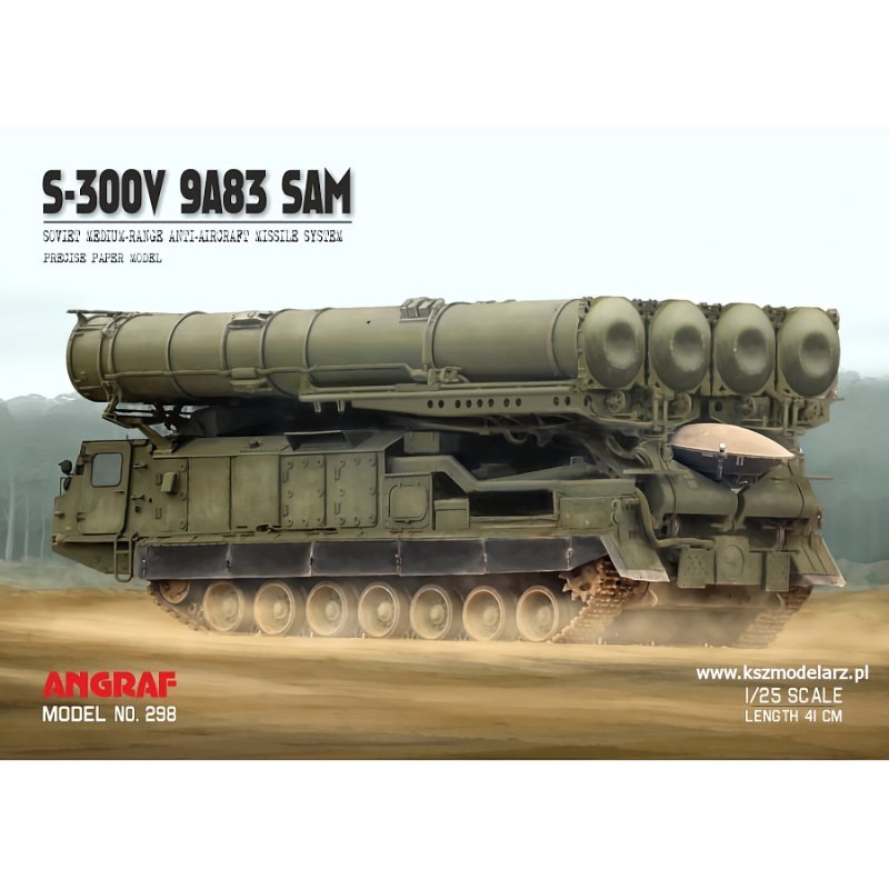 Model kartonowy przedstawia rosyjski system rakietowy ziemia-powietrze S-300V 9A83 SAM na podwoziu gąsienicowym. Opracowanie wiernie odwzorowuje bojowy zestaw wyrzutni w pozycji transportowej wraz z detalami konstrukcyjnymi. Skala 1:25 pozwala na uzyskanie okazałego modelu ekspozycyjnego. Autor opracowania zadbał o realistyczną grafikę imitującą przetarcia, oznaczenia i waloryzację. Model skierowany jest do modelarzy średniozaawansowanych oraz zaawansowanych.