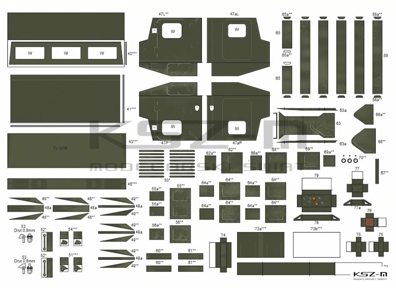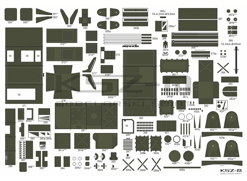 - Zestaw zawiera: arkusze kartonu z nadrukowanymi elementami modelu, instrukcję montażu
