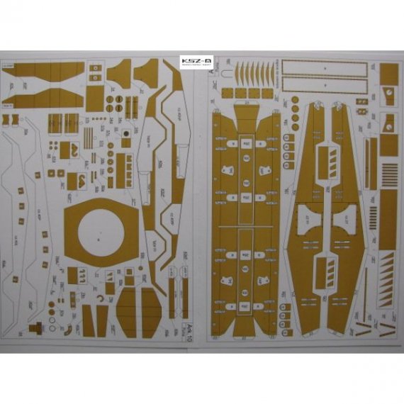 - zestaw wycinany laserowo: szkielet (wręgi), koła, bieżniki opon