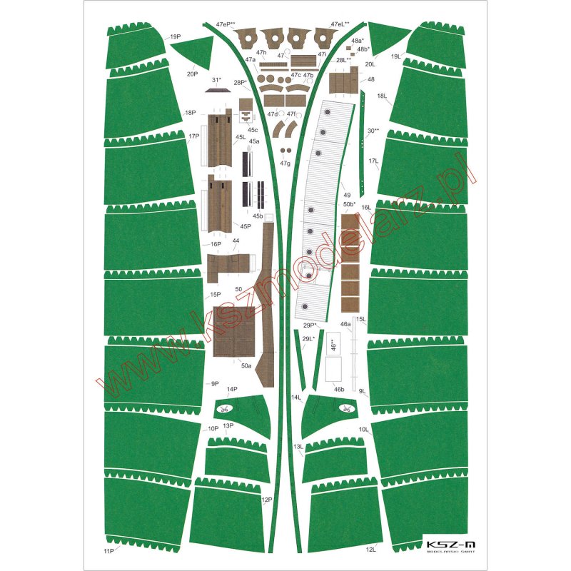 - Wymiary modelu po sklejeniu: długość kadłuba 31 cm, wysokość: 27 cm