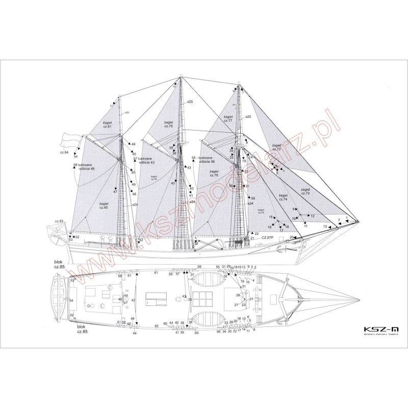 Zbudowany w 1902 w Szwecji s/y Zawisza Czarny był w latach 1934 - 1939 żaglowcem szkolnym Związku Harcerstwa Polskiego. Model jak na żaglowiec stosunkowo prosty. Zawiera instrukcję po polsku i angielsku.